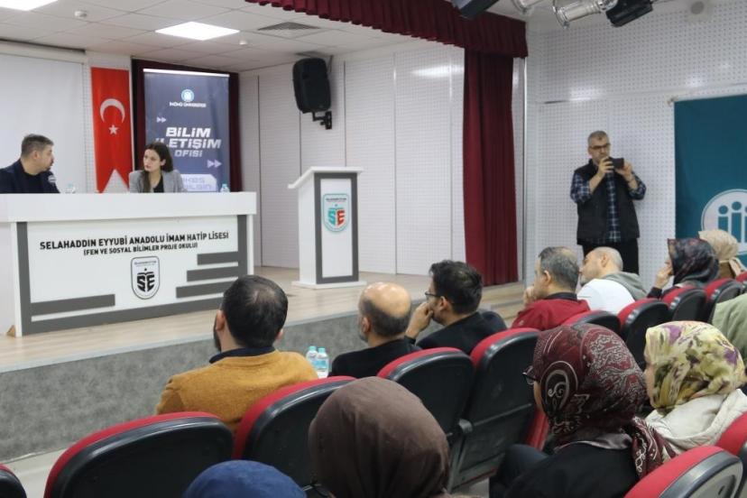 Malatya Selahaddin Eyyubi Anadolu İmam Hatip Lisesi’nde gerçekleştirilen söyleşiye öğrenciler ve öğretmenler yoğun ilgi gösterdi. Söyleşinin konuğu İnönü Üniversitesi İletişim Fakültesi Gazetecilik Bölümü Öğretim Üyesi Doç. Dr. Mehmet Barış Yılmaz olurken, moderatörlüğünü ise Radyo ve Televizyon öğrencisi Nisanur Hivva Yaşar yaptı. Programın açılışında konuşan moderatör Nisanur Hivva Yaşar, dijital çağda çocukların sosyal medya ile ilişkisini bilimsel bir çerçevede ele almanın önemine dikkat çekerek, söyleşinin katılımcılar için farkındalık oluşturmasını temenni etti.