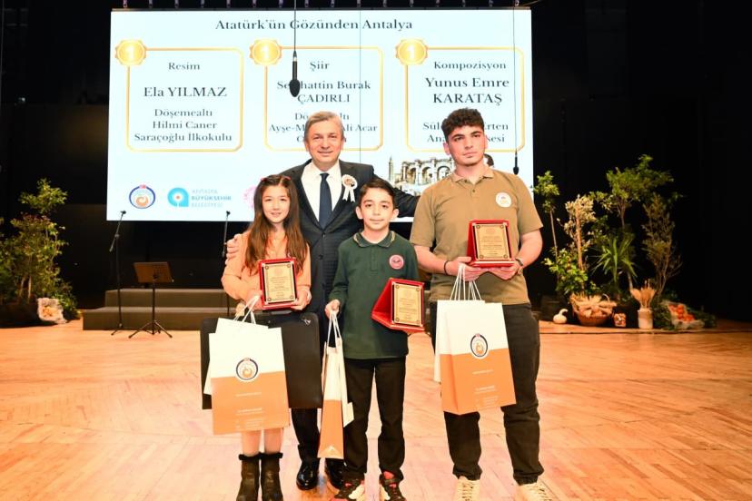 Açılış konuşmalarının ardından İl Milli Eğitim Müdürlüğü tarafından düzenlenen resim, şiir ve kompozisyon yarışmalarında dereceye giren öğrencilere plaketleri, Vali Hulusi Şahin ve protokol üyeleri tarafından takdim edildi. Ödül töreninin ardından, Neriman-Erol Yılmaz Sosyal Bilimler Lisesi öğretmen ve öğrencileri tarafından hazırlanan ‘Ebedi Hatıran’ adlı gösteri beğeniyle izlendi. Gösterinin ardından Vali Hulusi Şahin, beraberindeki heyetle birlikte AKM fuaye alanında yer alan ‘Atatürk’ün Antalya’ya Gelişi’ konulu sergiyi ziyaret etti.