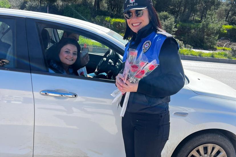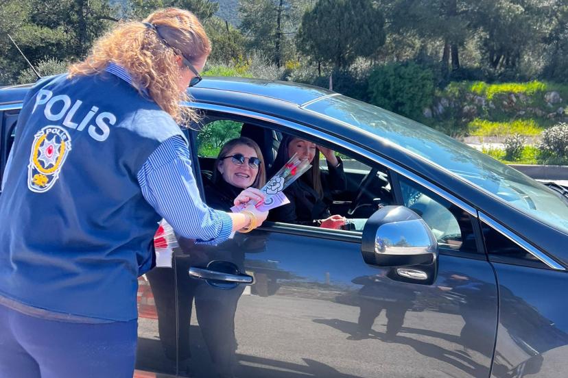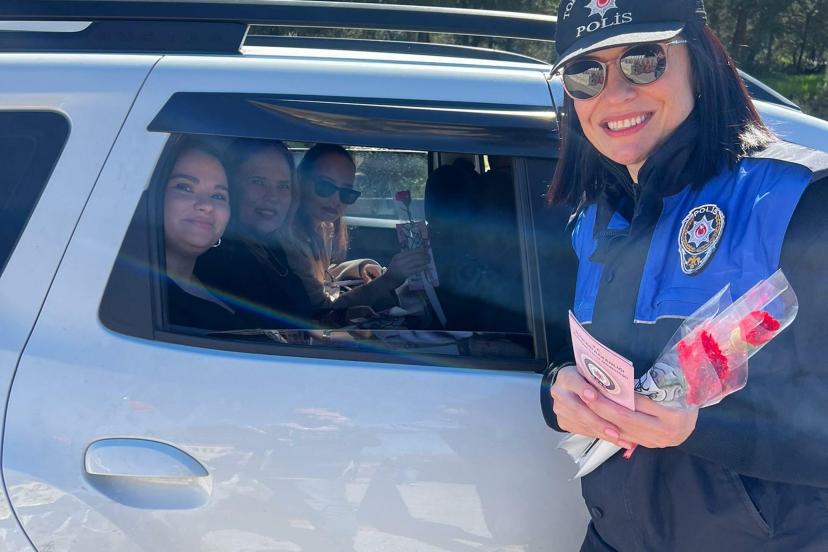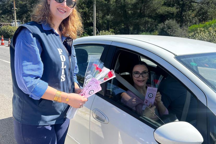 MUĞLA’nın Bodrum ilçesinde 8 Mart Dünya Kadınlar Günü dolayısıyla gerçekleştirilen farkındalık etkinliğinde, polis ekipleri kadın sürücü ve yolcuların gününü kutlayarak Kadın Destek Uygulamasını (KADES) tanıtıp, karanfil dağıtıldı.