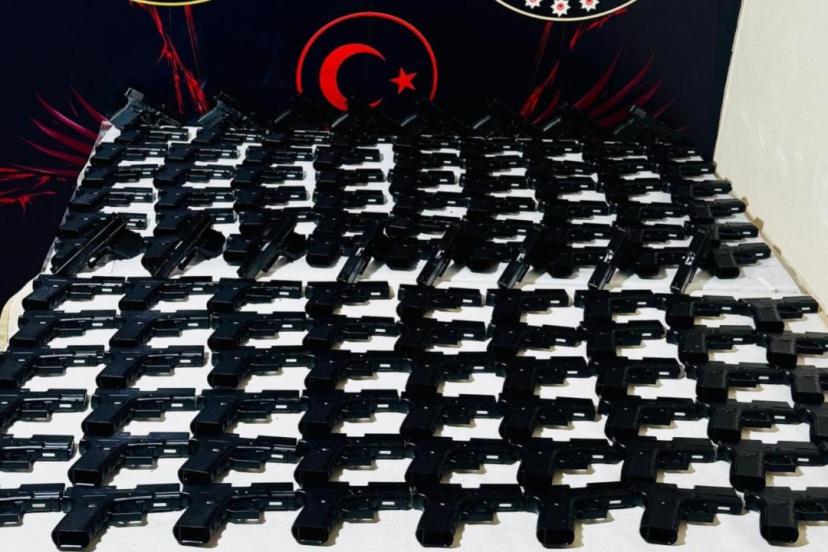 Aramada, kümese gizlenmiş 124 ruhsatsız tabanca, 76 tabanca sürgüsü, 28 namlu ile 39 icra mili ve yayı bulundu.