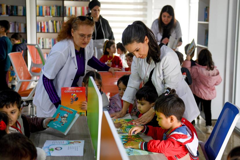 Öğretmenleri eşliğinde kütüphaneyi gezen küçükler, raflardaki kitapları inceleyerek okuma alışkanlığına dair ilk adımlarını erken yaşta atmış oldu. Kütüphane ortamını yakından tanıma fırsatı bulan çocuklar resimli masal kitaplarına yoğun ilgi gösterdi.
